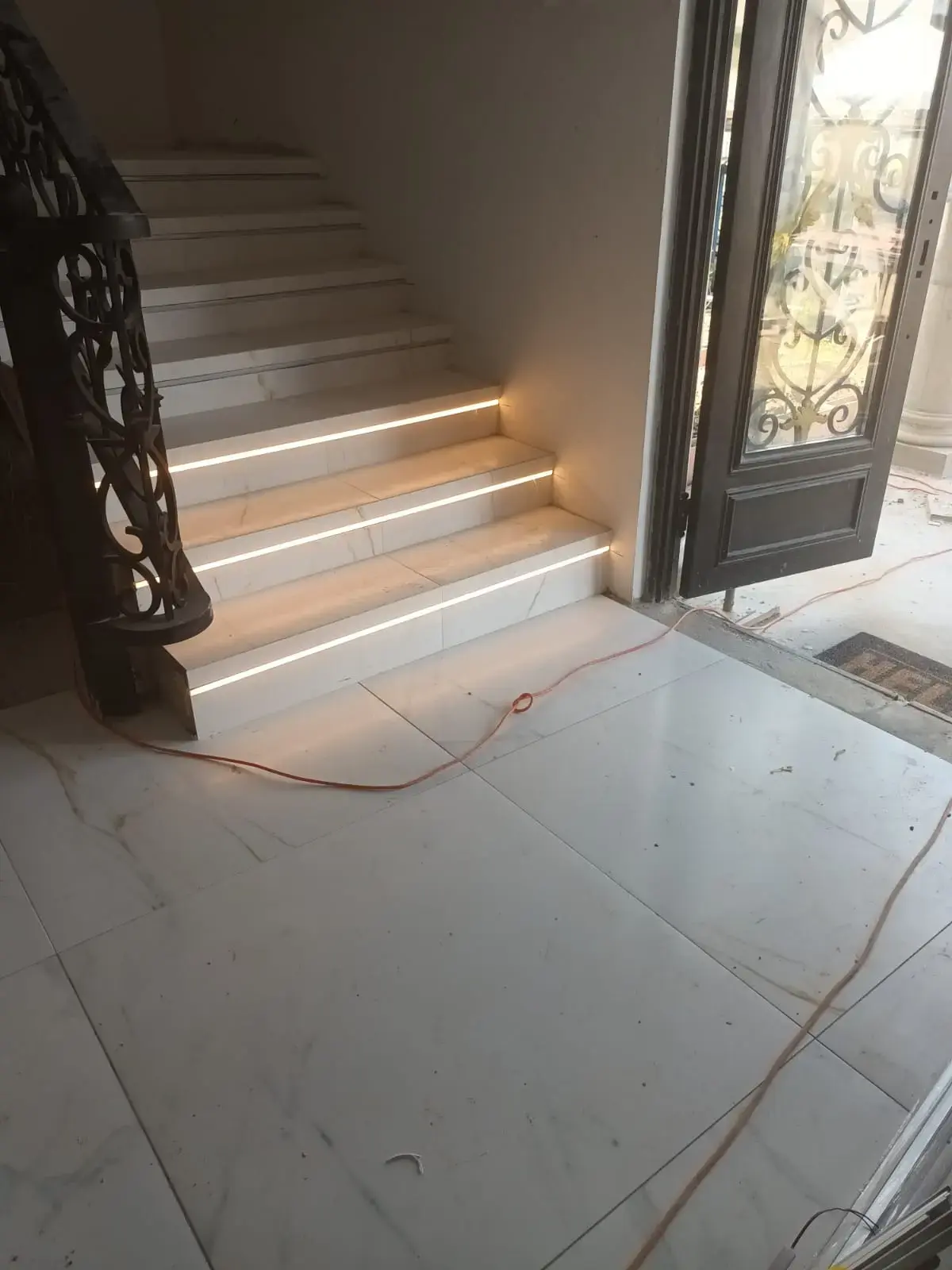 Client wanted her interior steps lit with motion detection. The client did not have the typical bullnose infrastructure, so i recommended this design as an alternative to light the stairs.